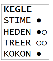 For hvert bogstav, som er med men sidder forkert, får du en hvid mønt: ○